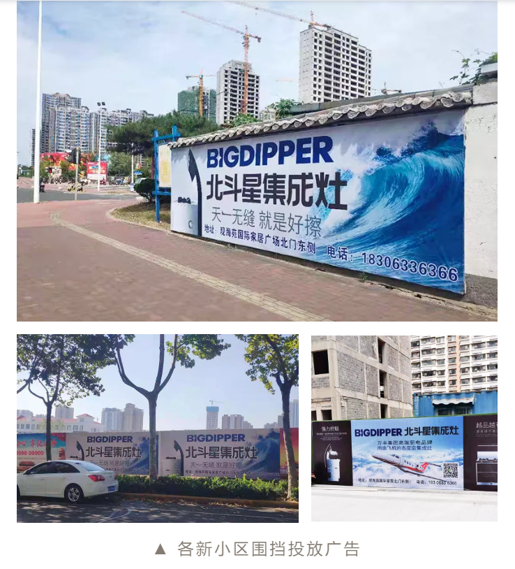 北斗星日照店還相繼對(duì)各大小區(qū)電梯廣告、消防宣傳欄以及小區(qū)圍擋等進(jìn)行精準(zhǔn)投放,聚焦目標(biāo)受眾,迅速引爆市場(chǎng),讓小區(qū)周邊的顧客都能看到北斗星的廣告,在產(chǎn)品以外加強(qiáng)與消費(fèi)者的情感溝通,鞏固北斗星集成灶在日照城市的廣告熱度。