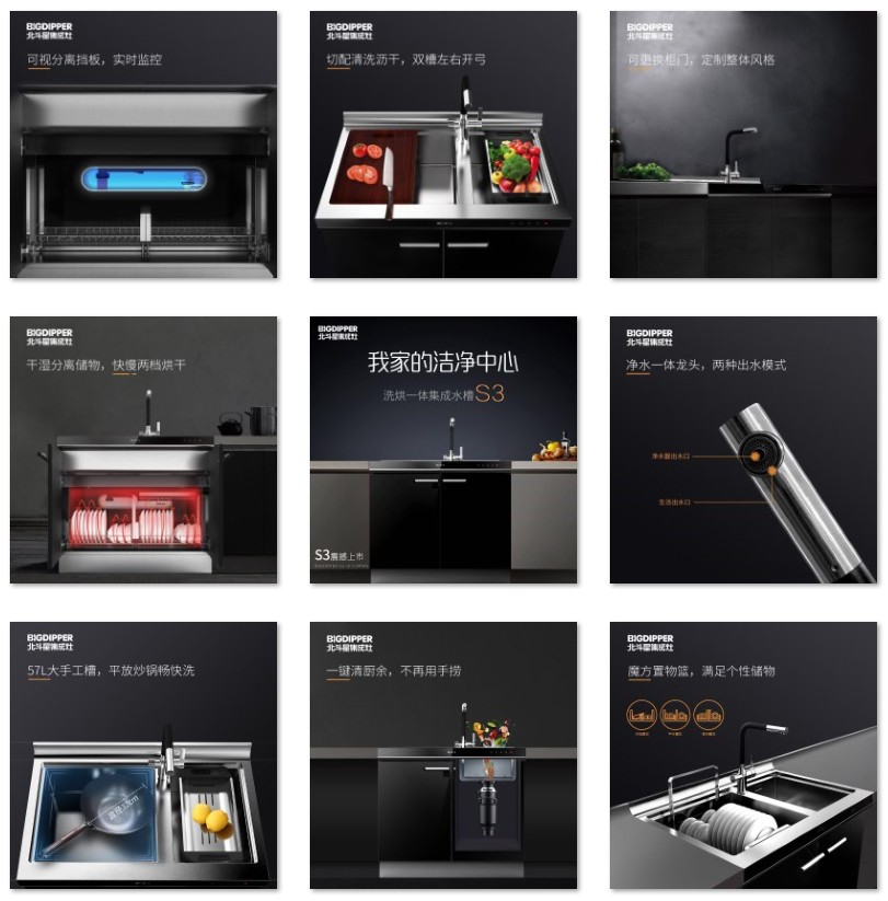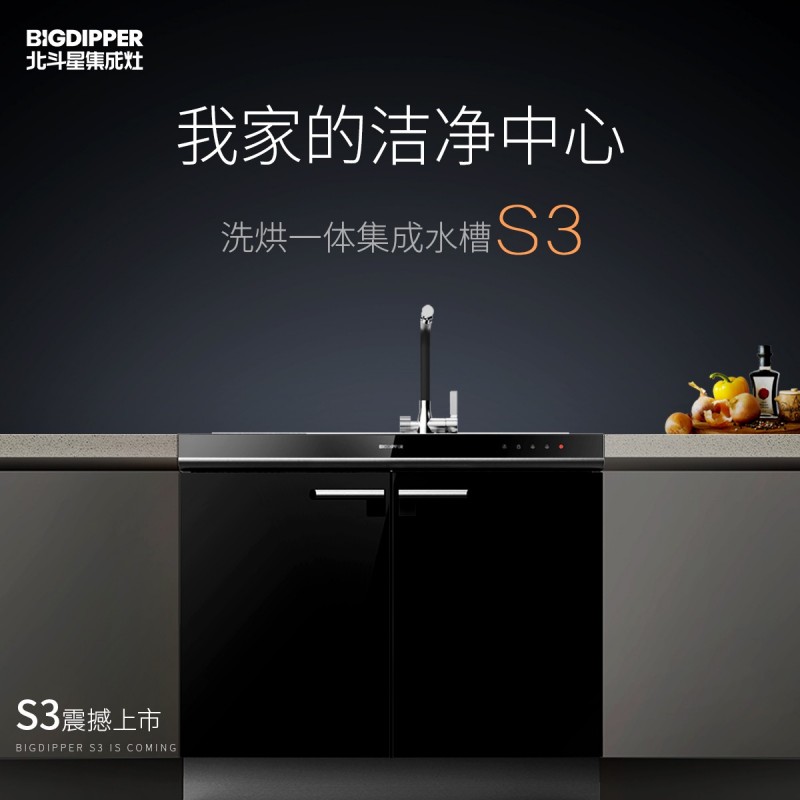 為給億萬(wàn)家庭打造一個(gè)幸福的家,北斗星新品洗烘一體集成水槽S3于3月15日震撼上市。其不僅延續(xù)了品牌的精工品質(zhì),同時(shí)圍繞顏值、性能、人性設(shè)計(jì)打造了三方面競(jìng)爭(zhēng)壁壘,它集成了清洗、切配、瀝水、儲(chǔ)物、烘干、垃圾處理等六大功能于一體,打造一個(gè)“我家的潔凈中心”,不僅在視覺上更加整體統(tǒng)一,同時(shí)大大增加儲(chǔ)物功能,提高了廚房空間利用率。