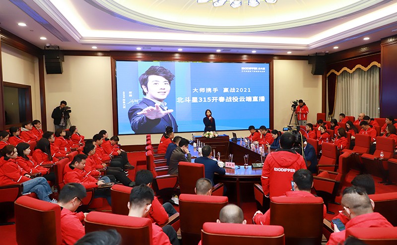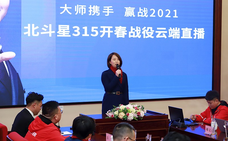 北斗星總經(jīng)理楊曉英攜公司經(jīng)營團隊、營銷中心全體員工以及全國加盟商相約直播間,共同探討行業(yè)發(fā)展趨勢,部署2021年營銷規(guī)劃。本場啟動會,因疫情防控需要,在云端進行線上直播,開啟北斗星315開春戰(zhàn)役啟動大會,激情筑夢,實現(xiàn)價值。