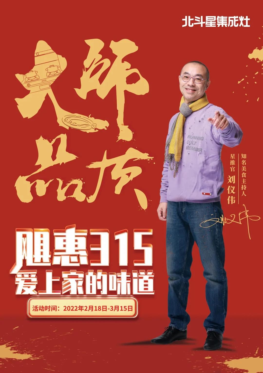 2月18日-3月15日,與北斗星星推官劉儀偉get一款適合自己的北斗星集成灶,用愛的大餐來解決生活考題!