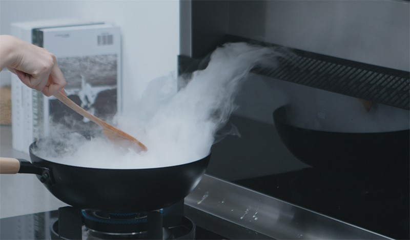 抽油煙機一般是安裝在頭上,是把油煙聚集到頂部。但是,集成灶采用側(cè)吸下排的方式,運用微空氣動力學(xué)原理,利用下沉空氣施壓形成負(fù)壓區(qū),把油煙聚集到底部被吸走。采用這種方式,油煙的吸凈率甚至超過99%。