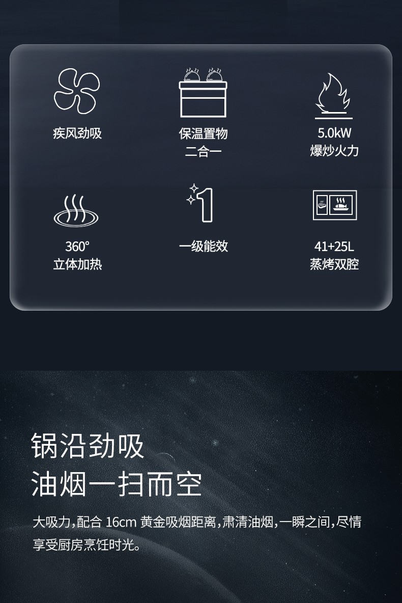 41+25L蒸烤雙腔,一體掛架更便捷